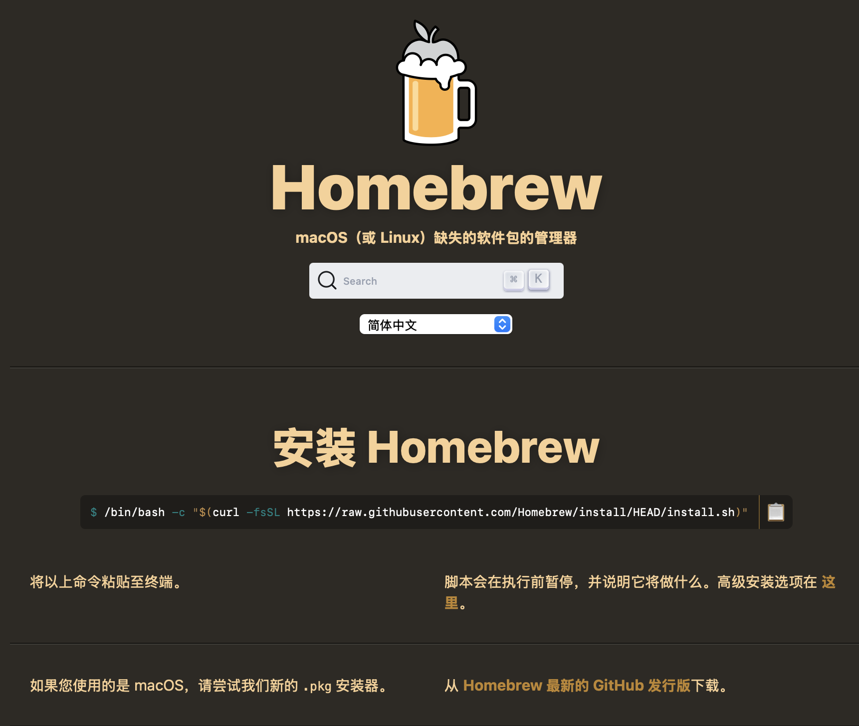 Homebrew 是 Mac 上最流行的软件包管理器,在 Mac 上配置开发环境必不可少。我在拿到 MacBook 的第一件事就是安装 Homebrew。
