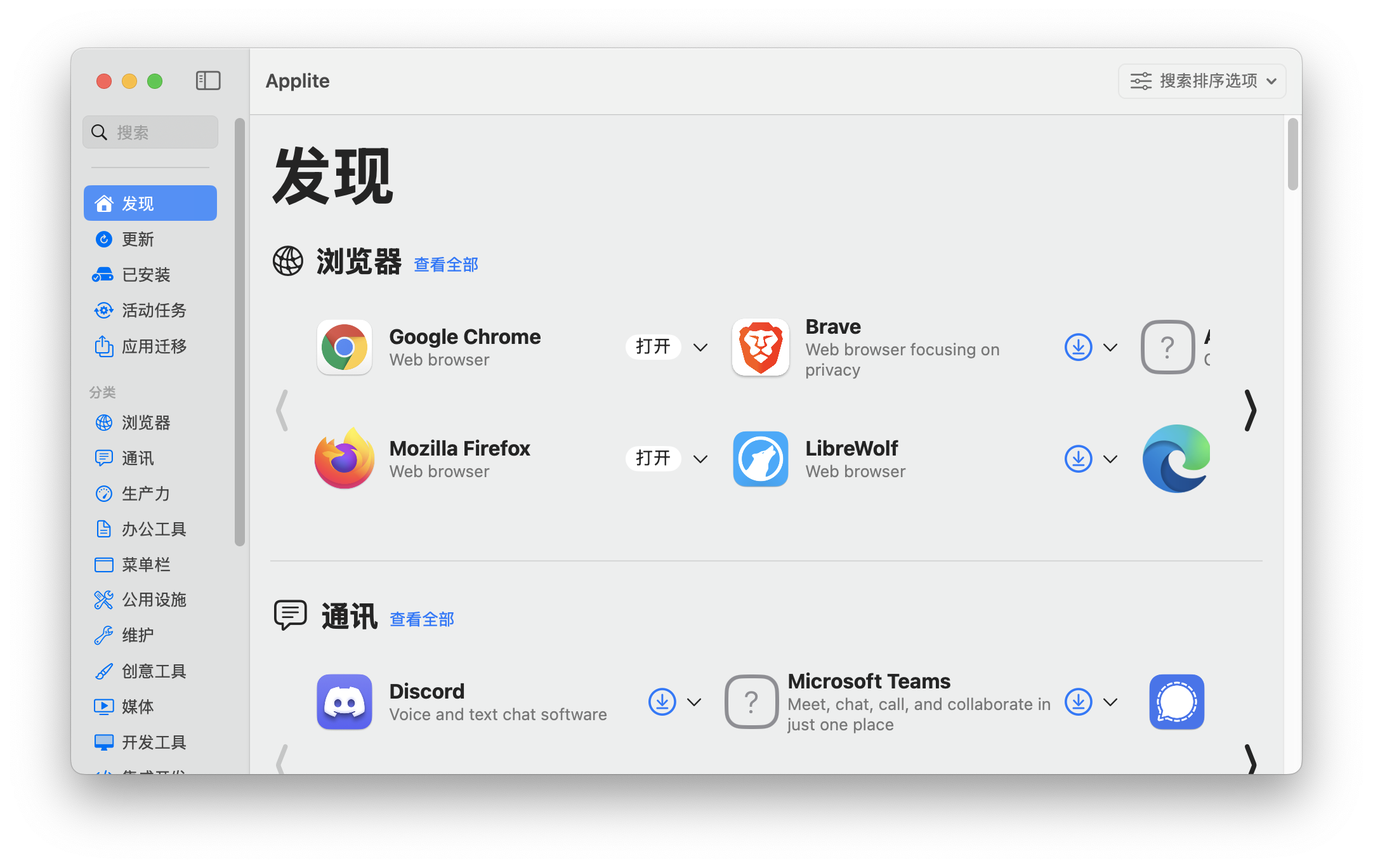 AppLite 是 HomeBrew casks 的一个图形界面,可以作为 AppStore 的补充。