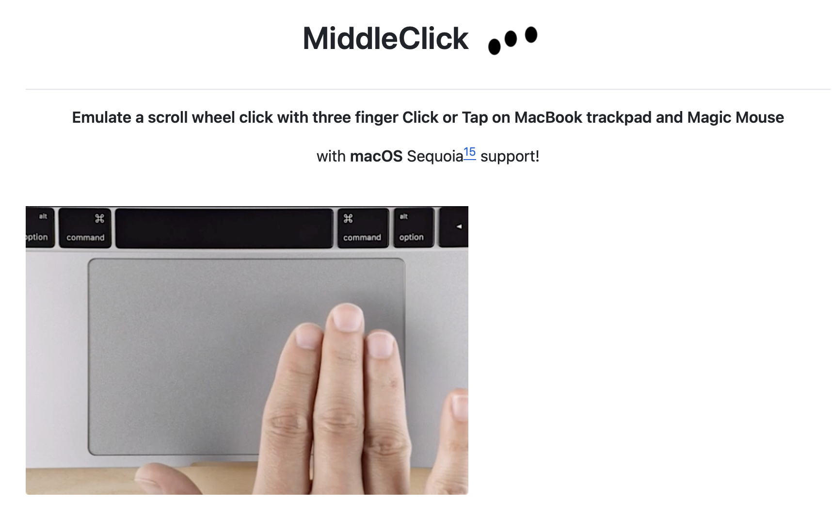 一个小工具,将三指点击触摸板映射到鼠标中键点击。目前在我这里唯一的用处是允许单手在浏览器里将链接在新标签页中打开。