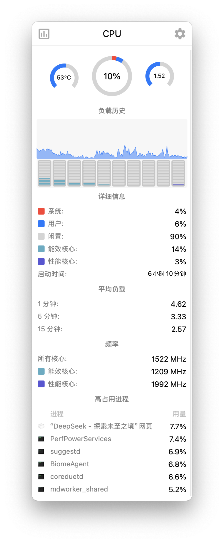 Stats 是一个 MacOS 下的系统监控工具,可以实时监控 CPU、内存、磁盘、网络等系统资源的使用情况,并显示在菜单栏中。收费软件 iStat Menus 的免费替代品。