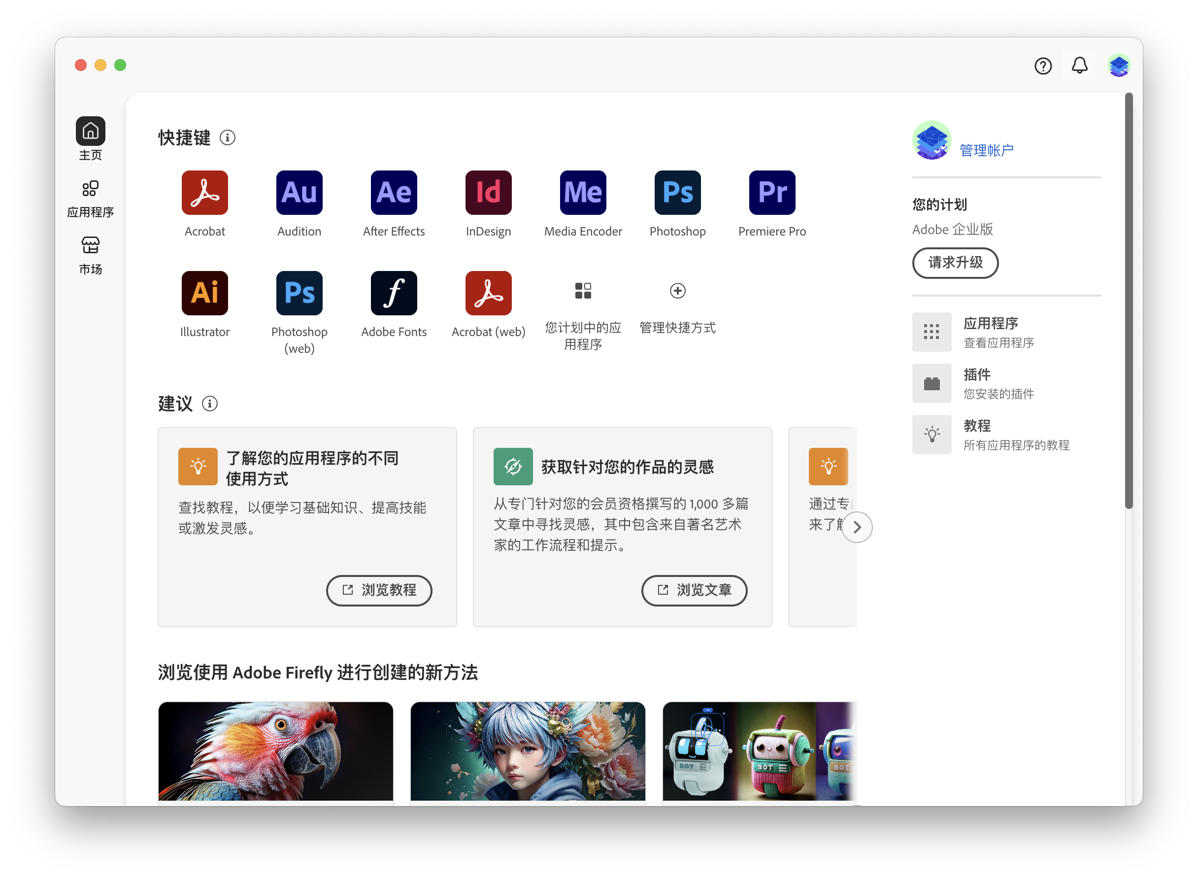 都说 Mac 适合设计和视频剪辑,所以自然不能少了 Adobe 的软件。学校买了 Adobe Creative Cloud 的正版授权,安装之后可以从里面下载全家桶的各个软件。
