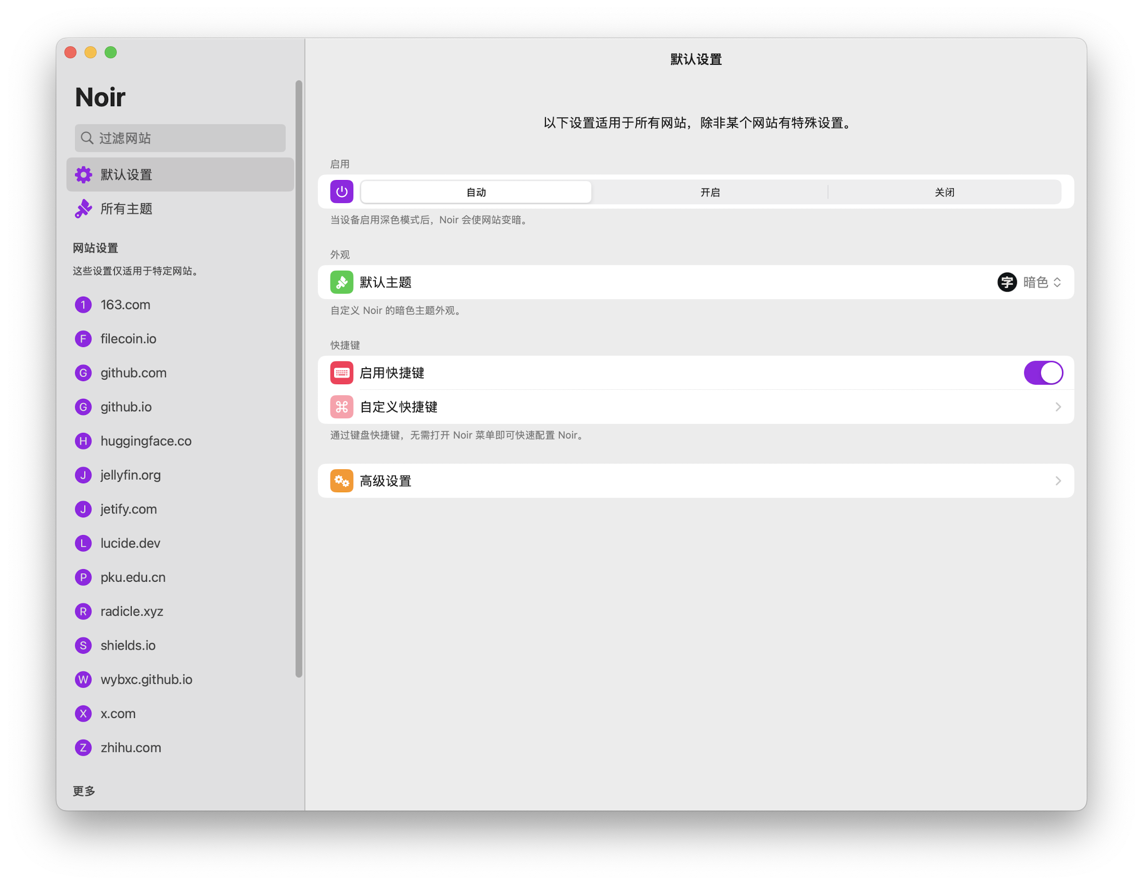 Noir 也是 Safari 的扩展,可以给网页添加深色模式,支持自动切换深色和浅色模式。